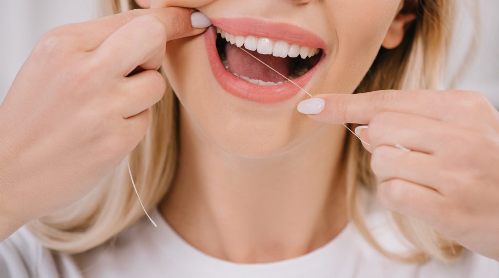 Flossing consistently with proper technique is vital for gum hygiene maintenance. It can help remove the food particles stuck in your gums between your teeth, as brushing alone may not clean all the hard-to-reach spots as effectively as flossing will. Refer to our article on the benefits of flossing regularly.